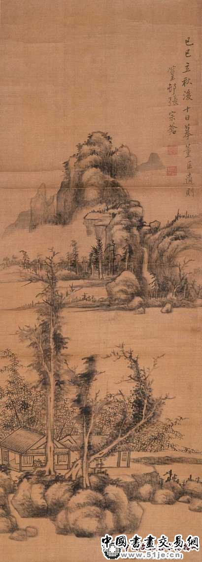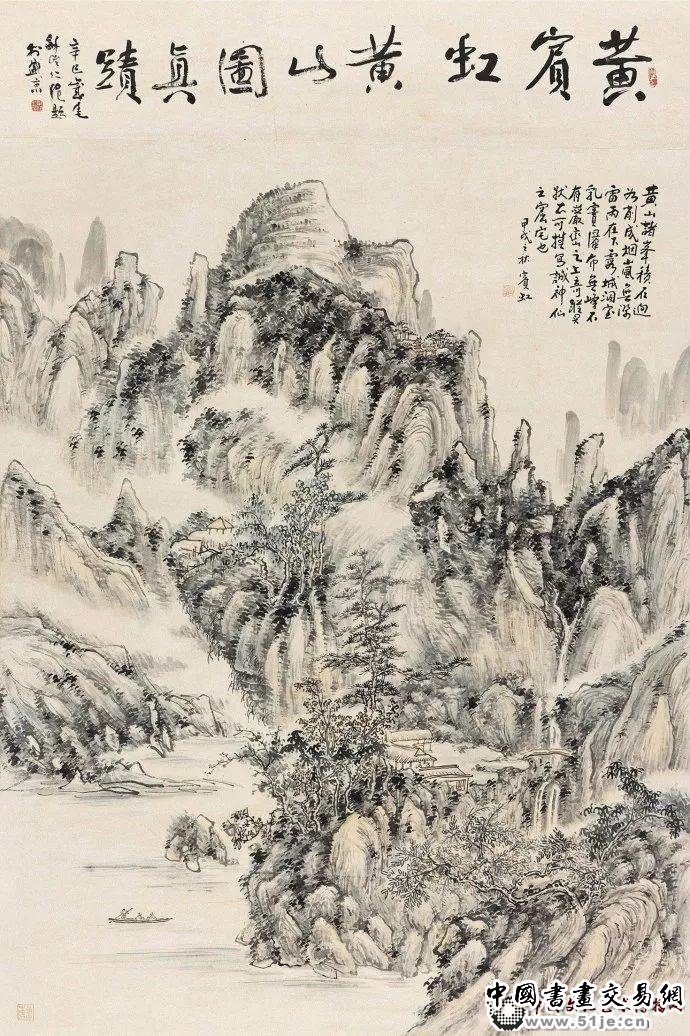 此外,徽商还依靠发达的宗族制度,把部分藏品以家族承传的方式传之子孙,形成收藏史上特有的“世守”制度。这种传统一直延续至黄宾虹出生时的晚清。其父14岁时经商于浙江金华,失败之后携家返回故里,最终老死家乡。这一方面深深地影响了黄宾虹的重商观念。另一方面,其父继承了徽商儒雅之风,家中收藏有大量的古籍、古书画、古印章等。黄氏自孩童时就在这种艺术氛围中浸染,经常摹习沈周、沈庭瑞等人画册,尤喜董其昌、查士标之画,乃刻意研习不辍,故这一时期黄宾虹的山水画风格疏朗见白,古朴清逸,营造幽淡之气氛,被称作白宾虹。但从画面中还是可以看出用笔松秀灵动,线条老辣的特色。