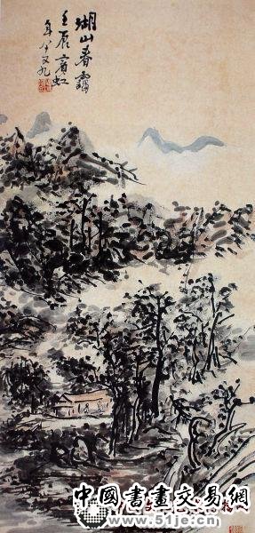 湖山春霭图轴,年代1952,尺寸75cmx36厘米
