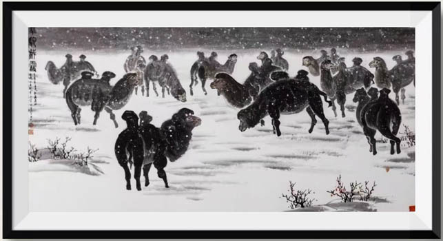 《群驼戏雪》68X136cm