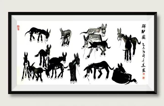 水墨画:群驴图276x138Cm