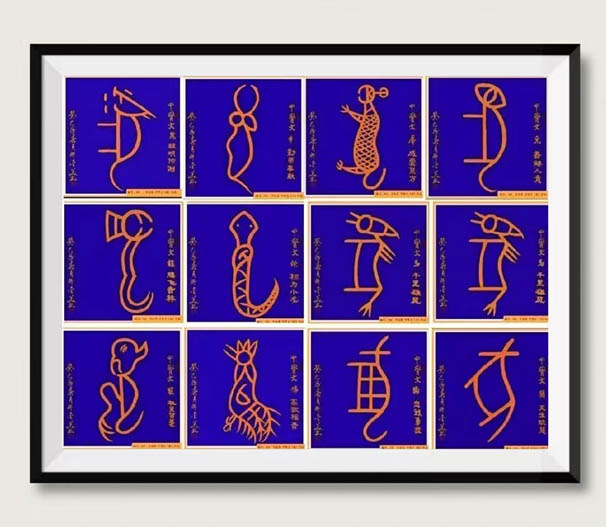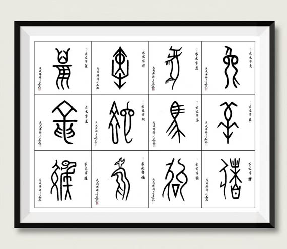 古文字十二生肖69cmx69cmx12(孤品)