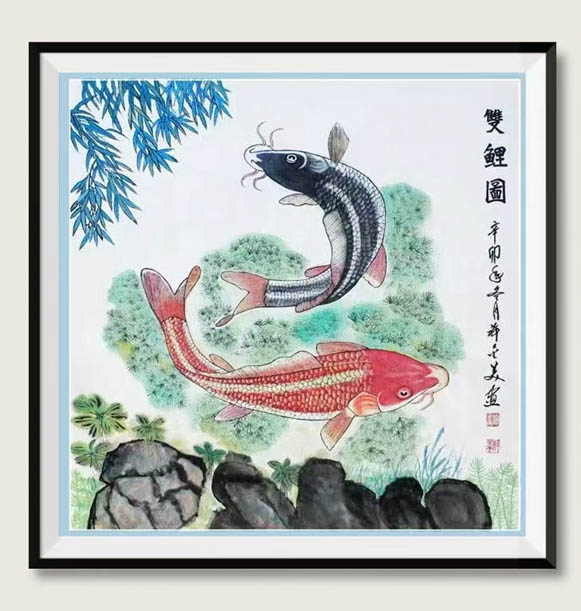 国画:双鲤图69X68cm(孤品)