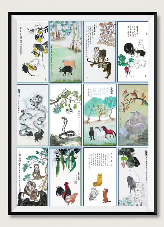 工笔画:动物十二生肖138cmx69cmx12(孤品)