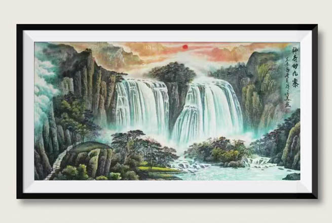 国画:神奇的九寨180cmx97cm(孤品)