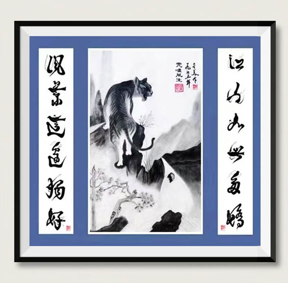 炭精粉画:虎啸风生80cmx50cm(孤品)曾荣获国际金奖