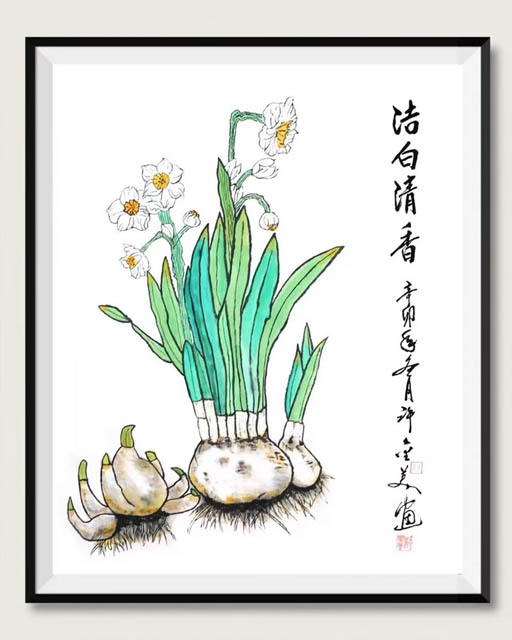 国画:洁白清香69cmx68cm(孤品)