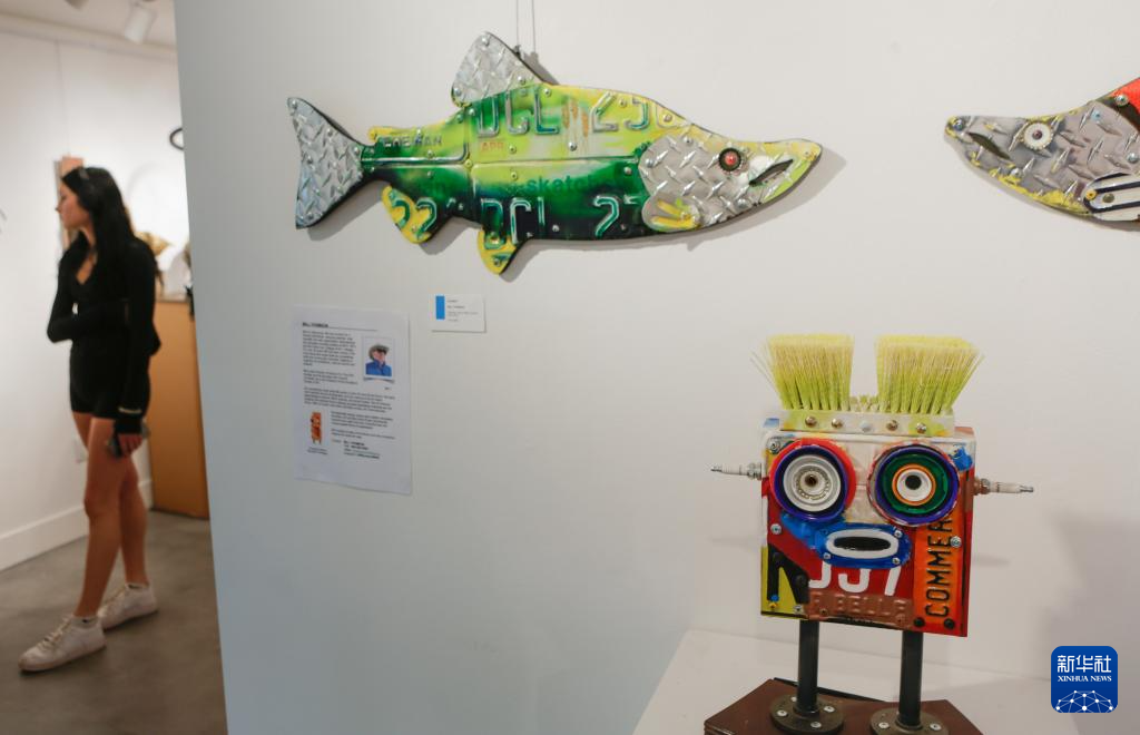 加拿大伯纳比4月18日举办回收材料艺术展,汇集了19名当地艺术家利用回收材料制作的艺术品。